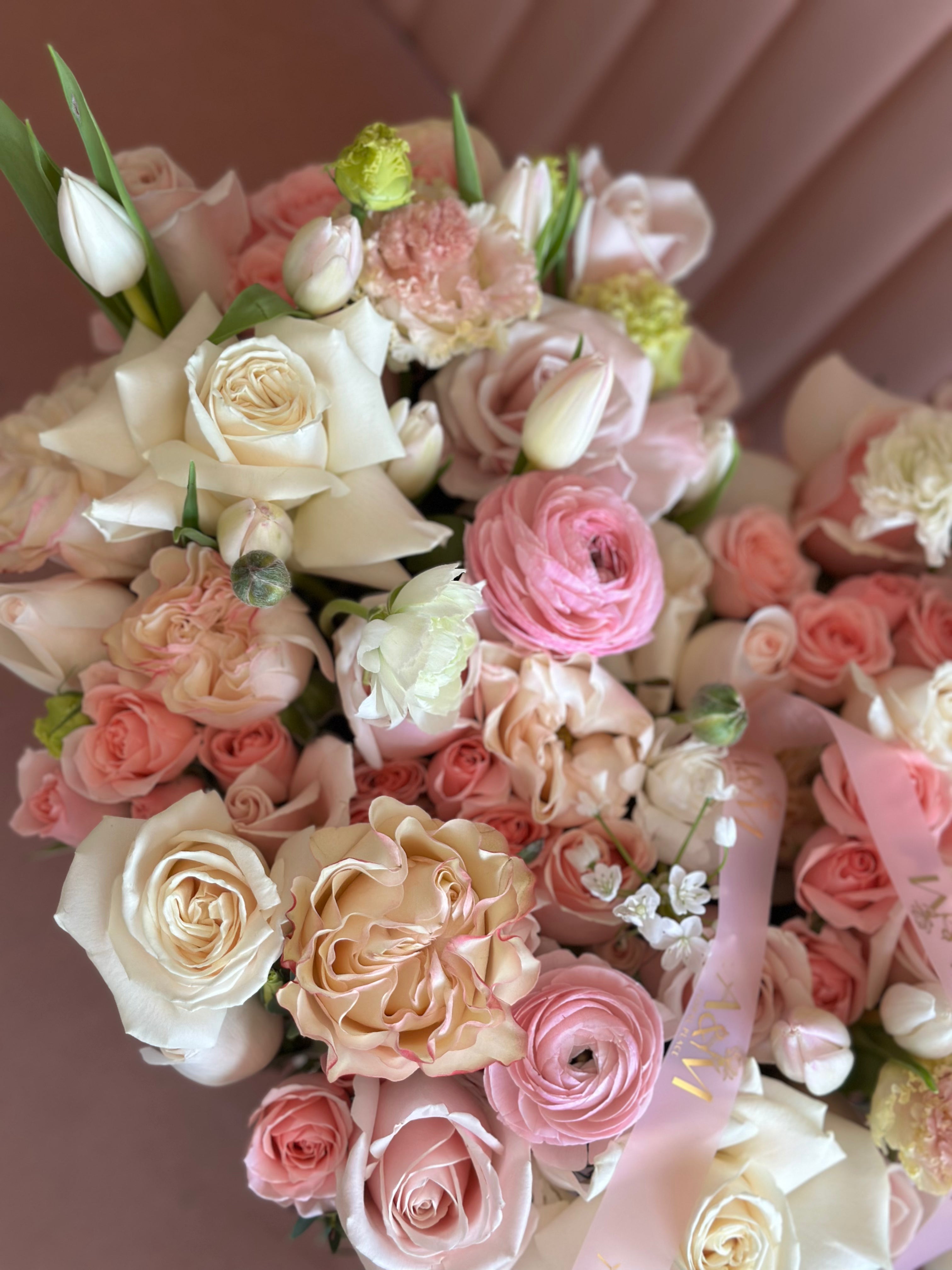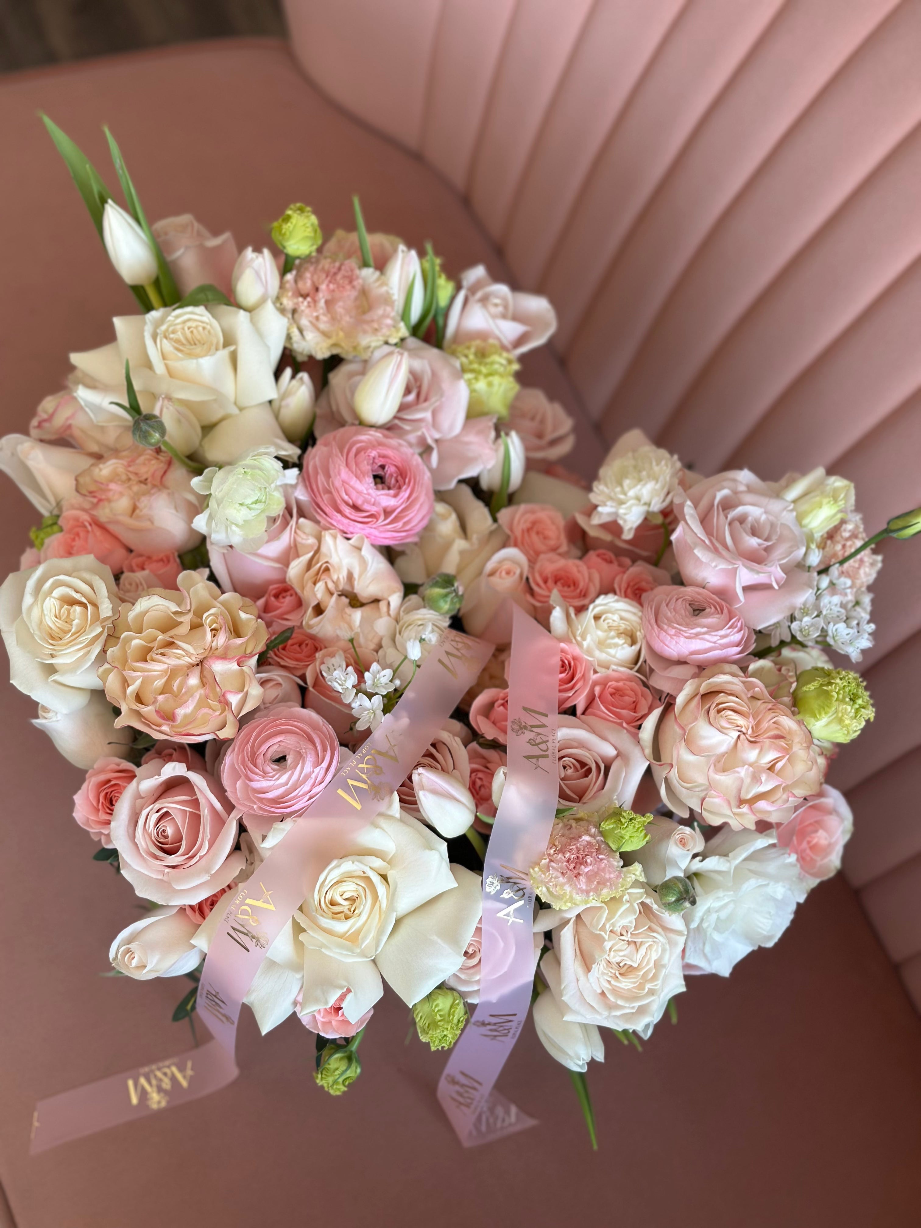 Gift love and warmth with this box filled with delicate floral arrangements. Perfect for expressing your most sincere emotions, this composition elegantly blends sophistication and charm.