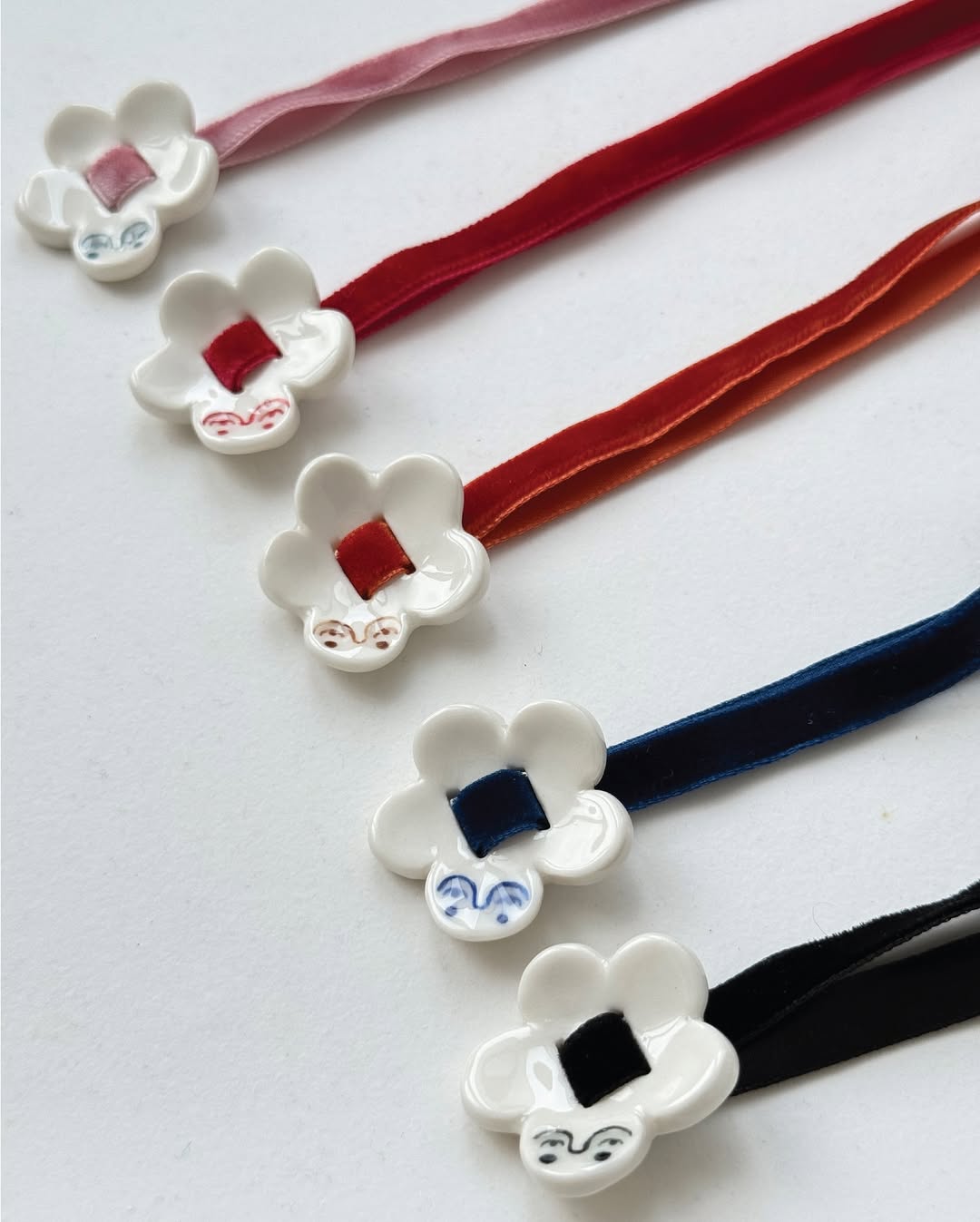 Flower pendant on velvet lace (red or blue), also can be as a bracelet