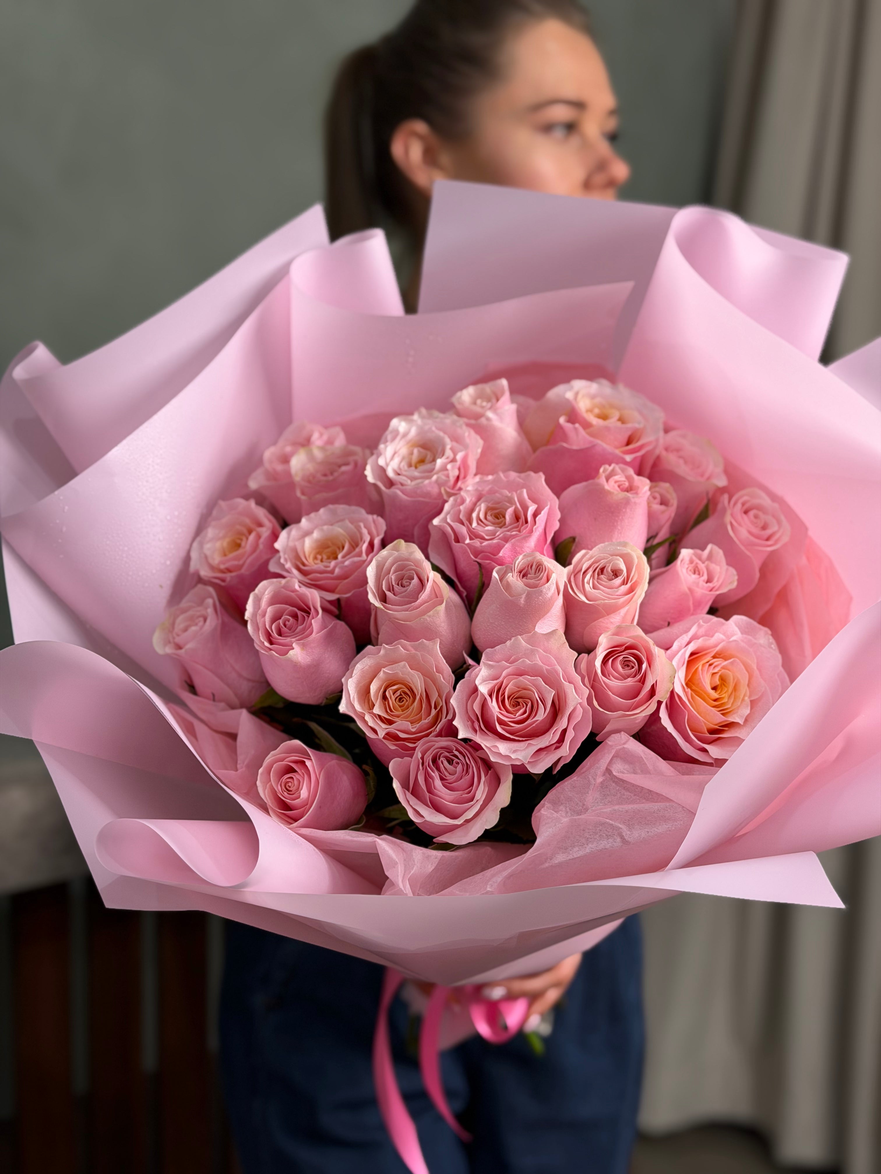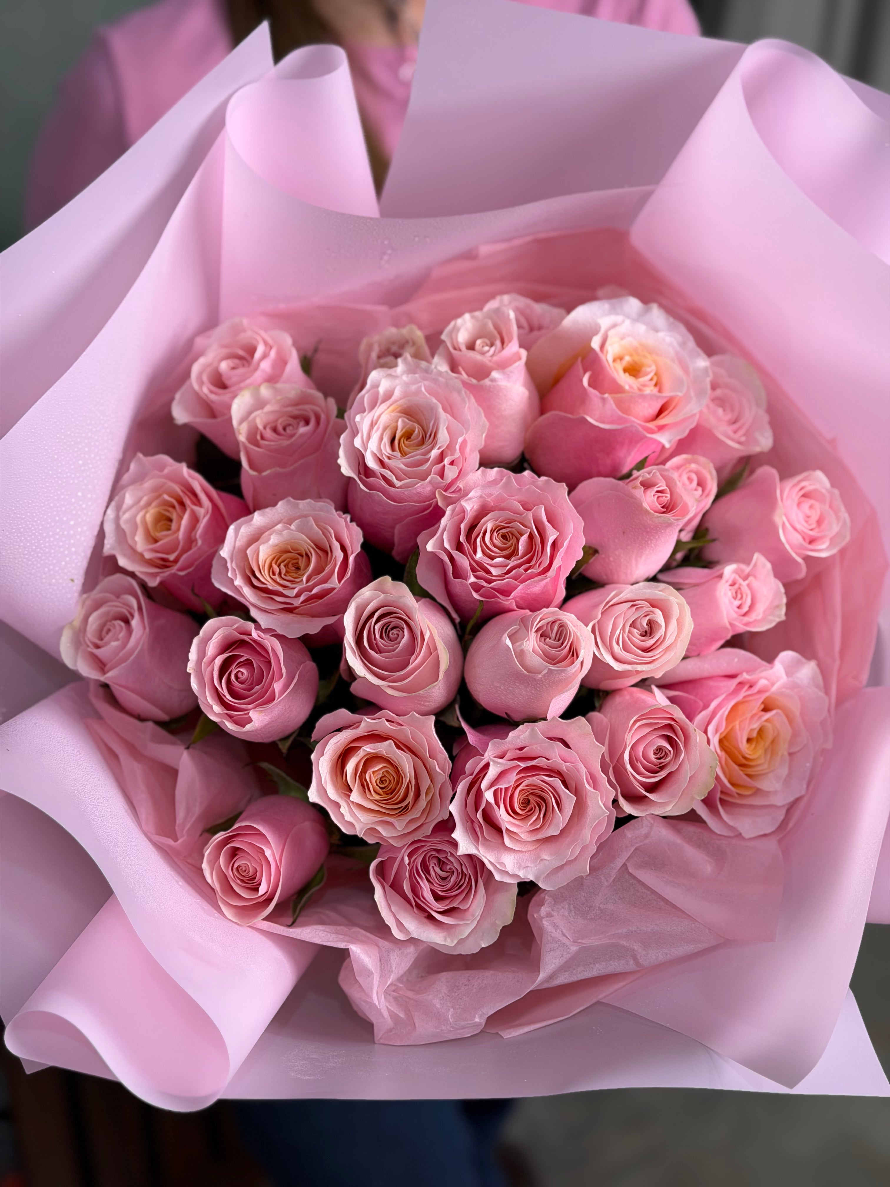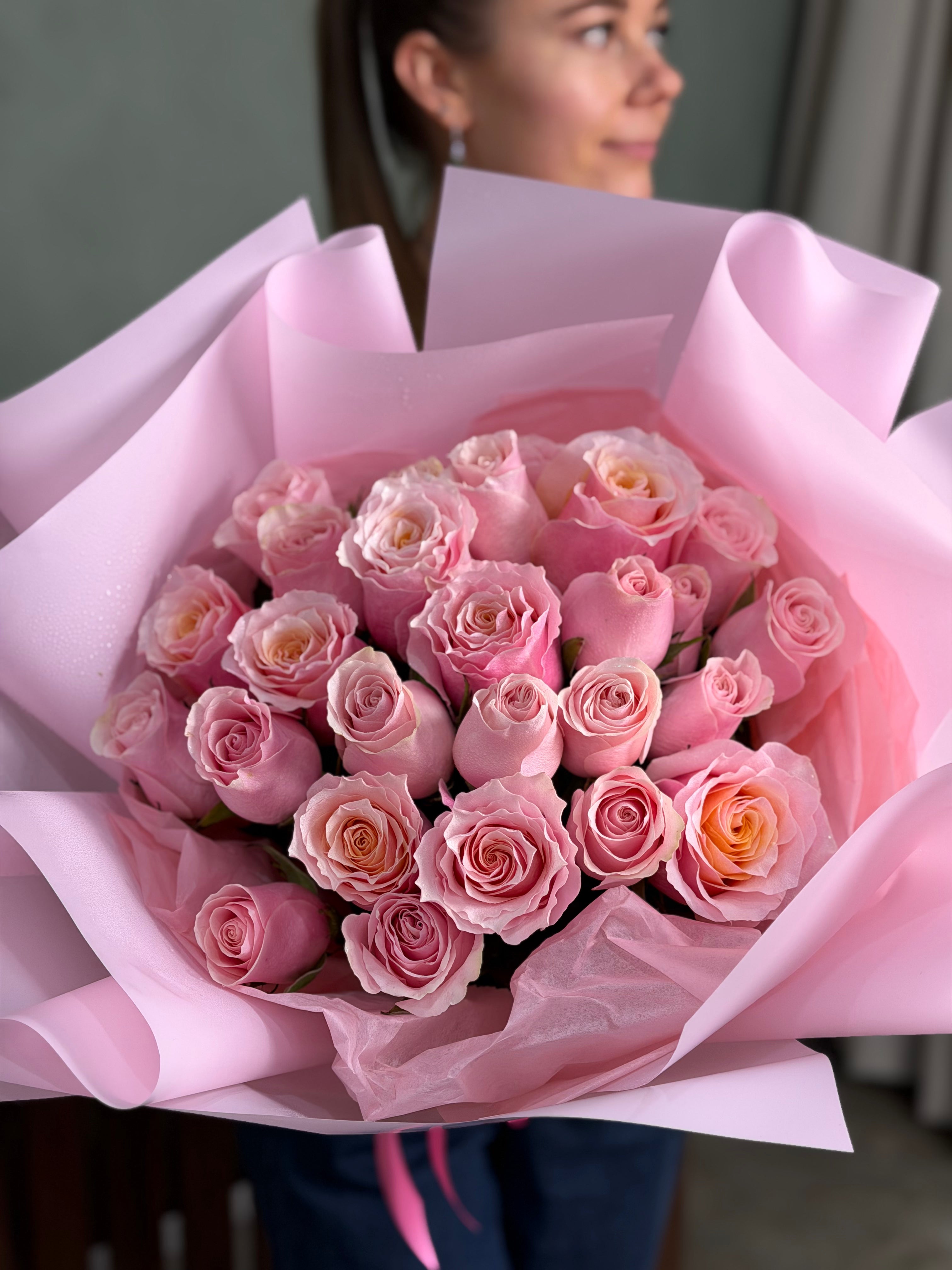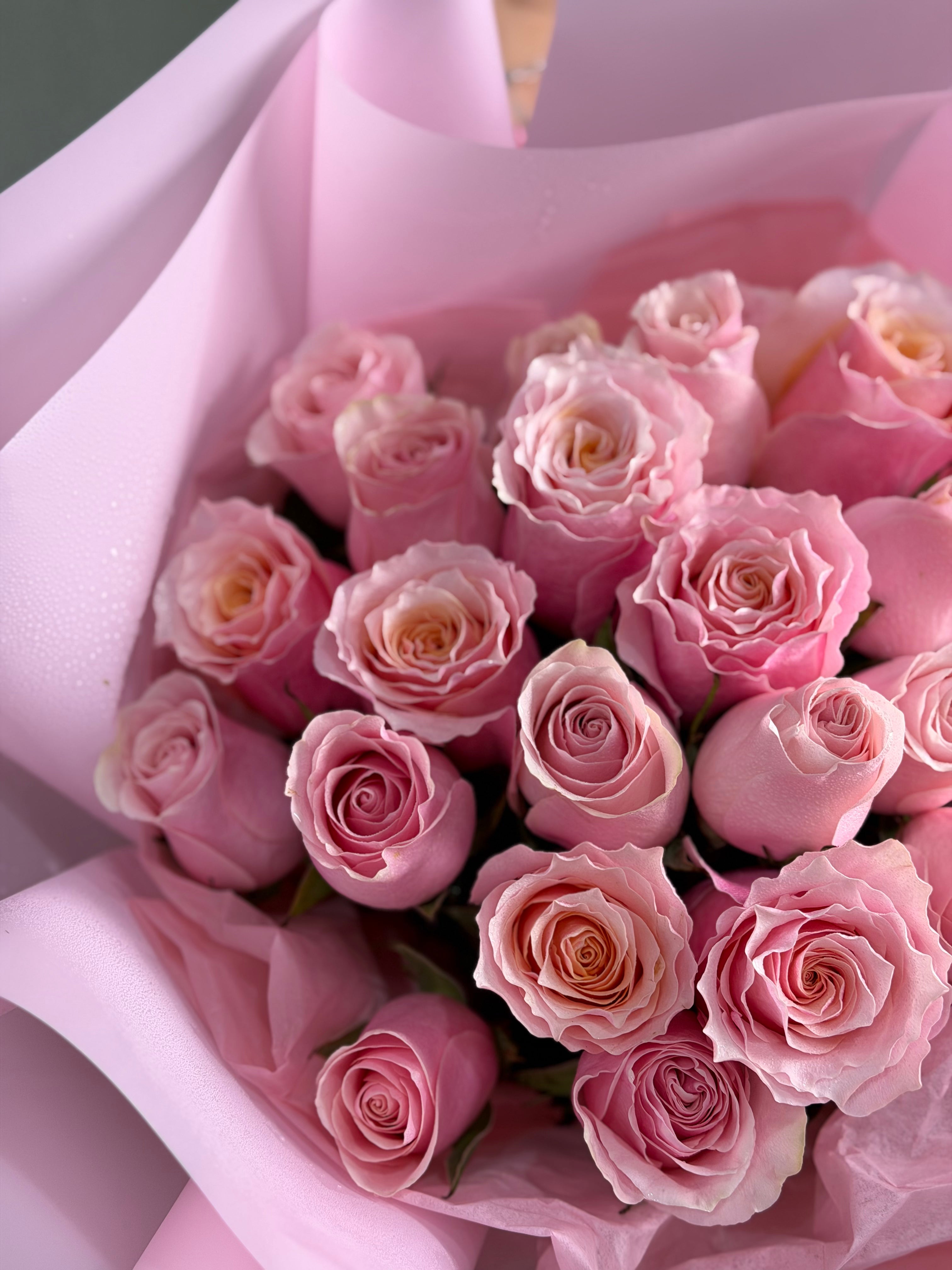 Mono bouquet with hot pink or light pink roses. Check the quantity of roses below.