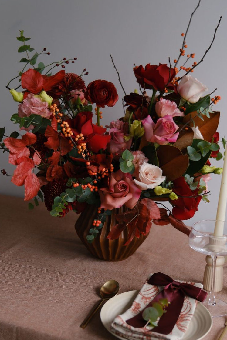 A refined and romantic arrangement of soft pink and peach roses accented with delicate green blooms, created for heartfelt moments and available for same-day delivery across Brooklyn, Manhattan, Queens, and Staten Island.