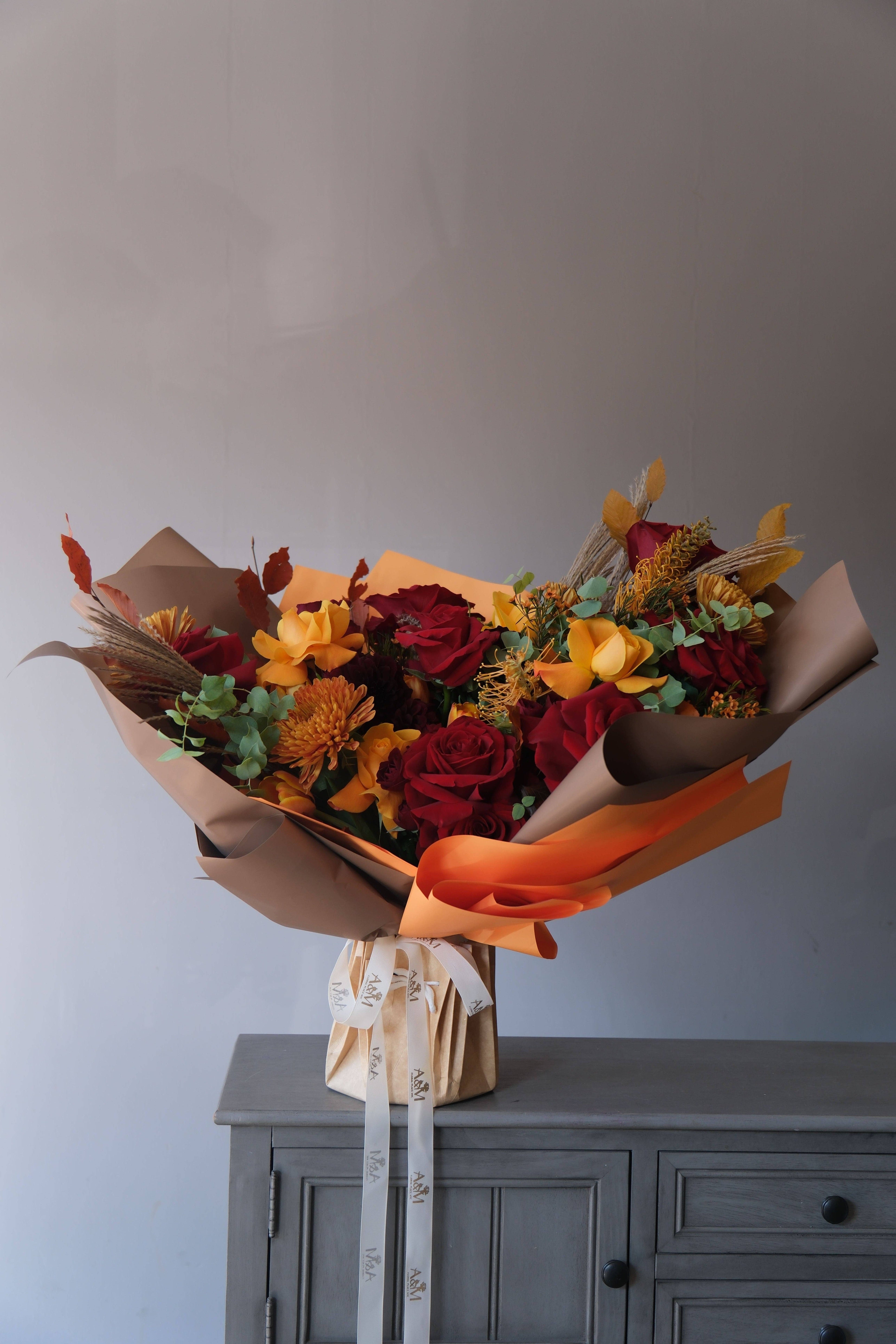 Wrapped in our signature premium packaging, the bouquet radiates brightness and elegance. On the photo, you see the Large size — full, expressive, and perfect for making a statement.