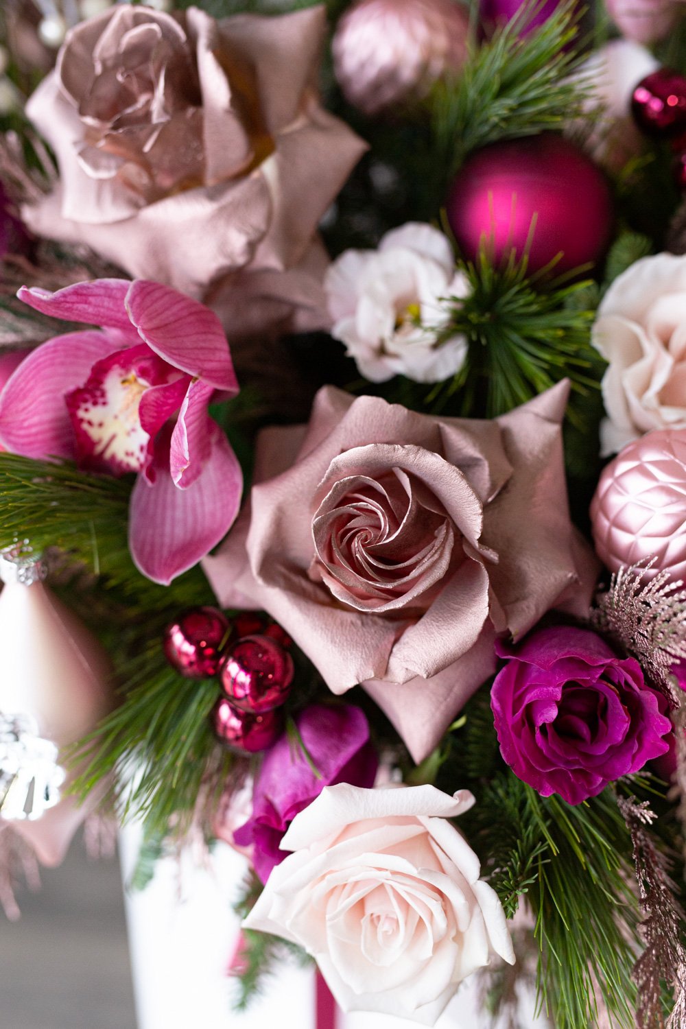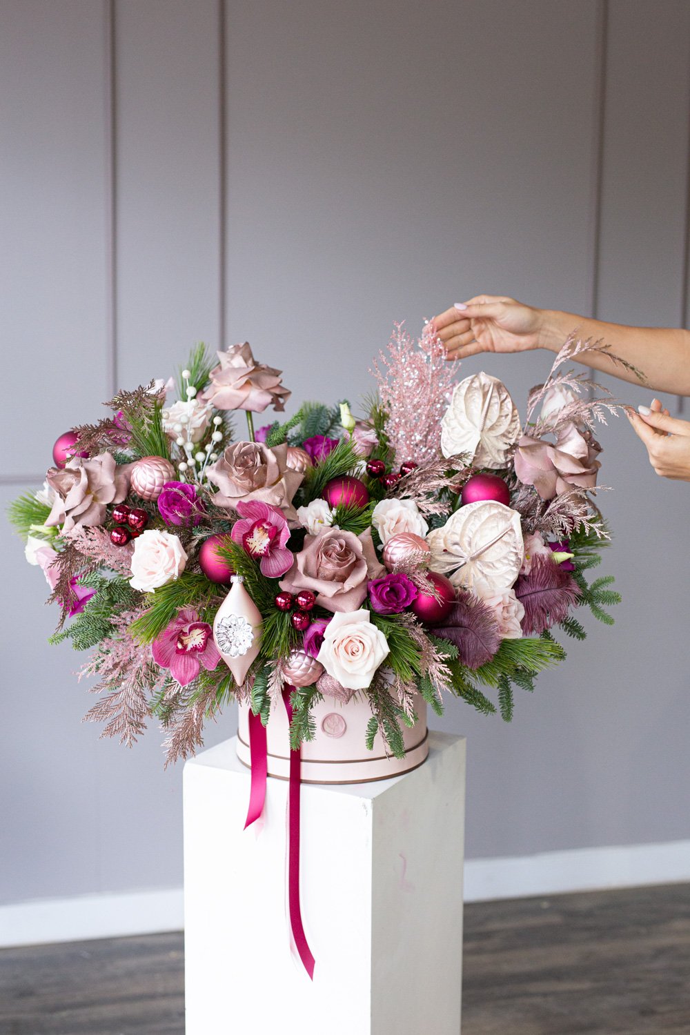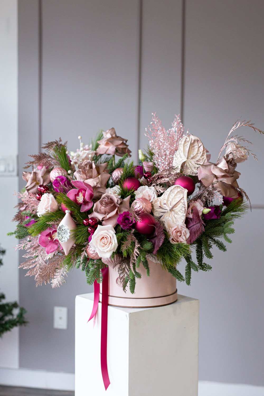 Order Christmas Flowers in NYC. Cristmas Flower boxes, Christmas tree in New York with same-day delivery to Manhattan, Brooklyn, Queens, Staten Island. Christmas decorations by professional florists: Christmas wreath, Christmas pine, Christmas centerpieces, Mini Christmas Tree.