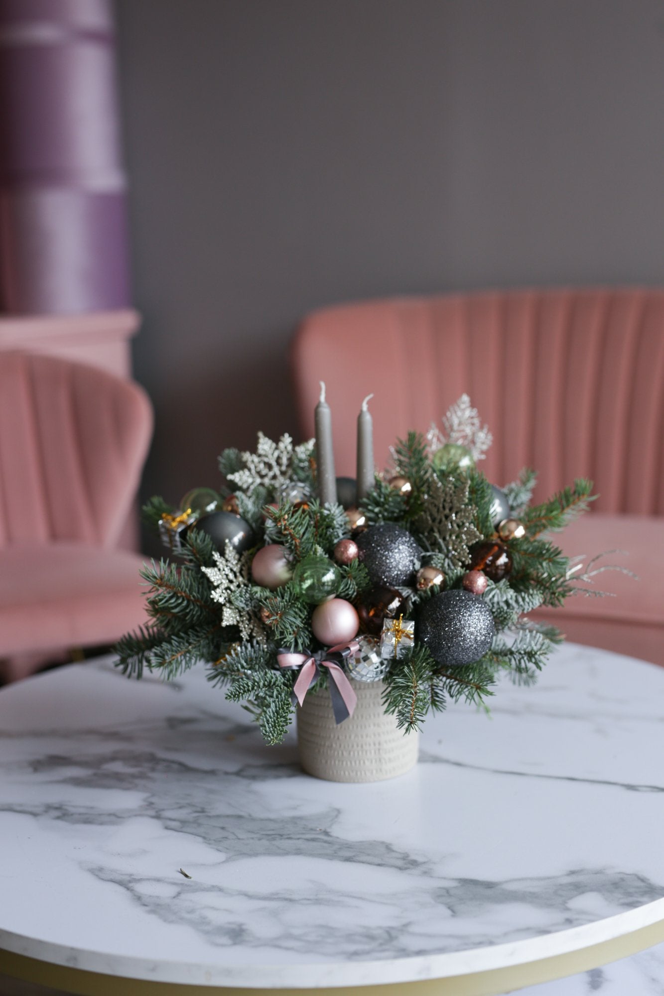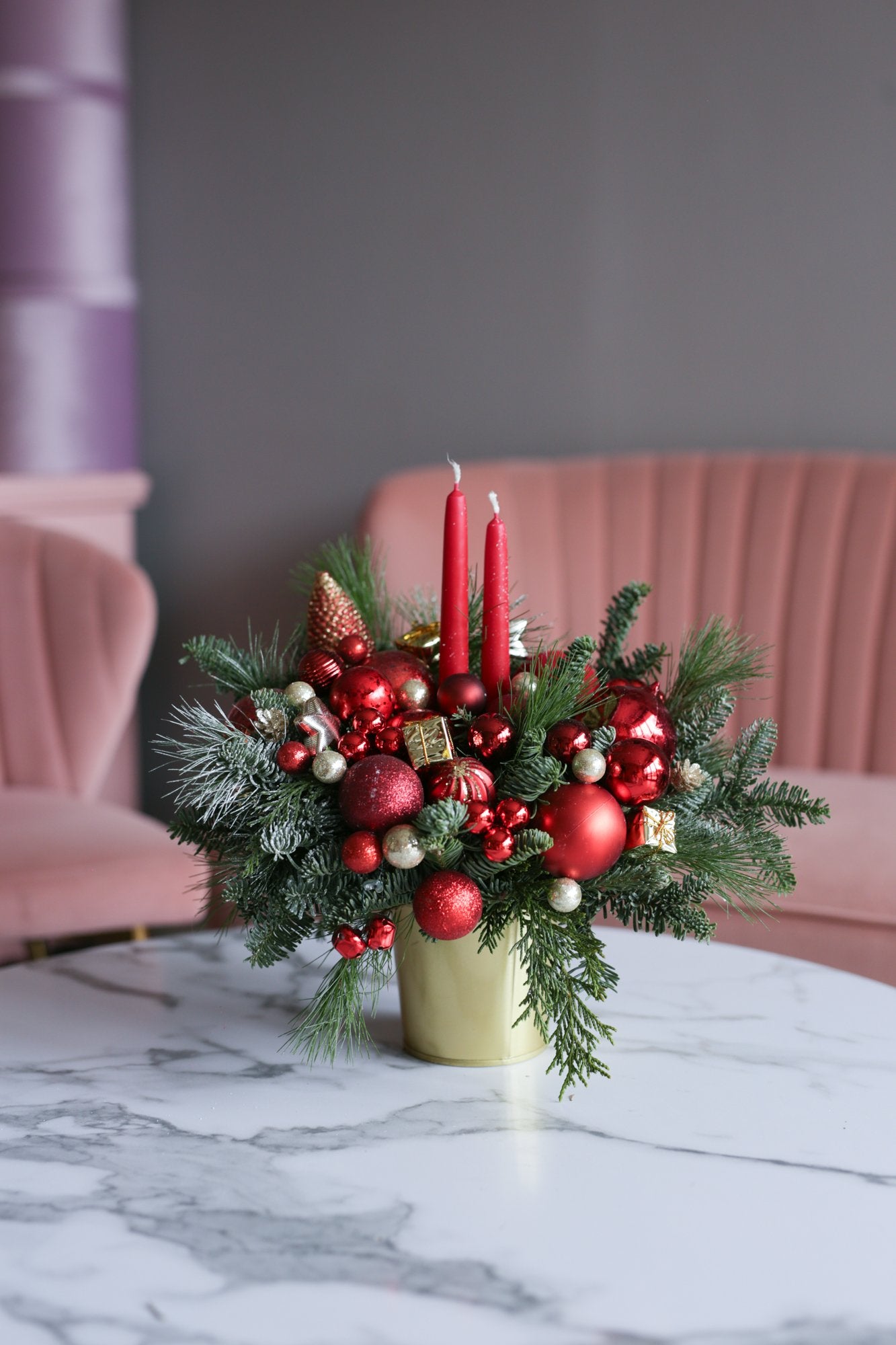 Order Christmas Flowers in NYC. Cristmas Flower boxes, Christmas tree in New York with same-day delivery to Manhattan, Brooklyn, Queens, Staten Island. Christmas decorations by professional florists: Christmas wreath, Christmas pine, Christmas centerpieces, Mini Christmas Tree.