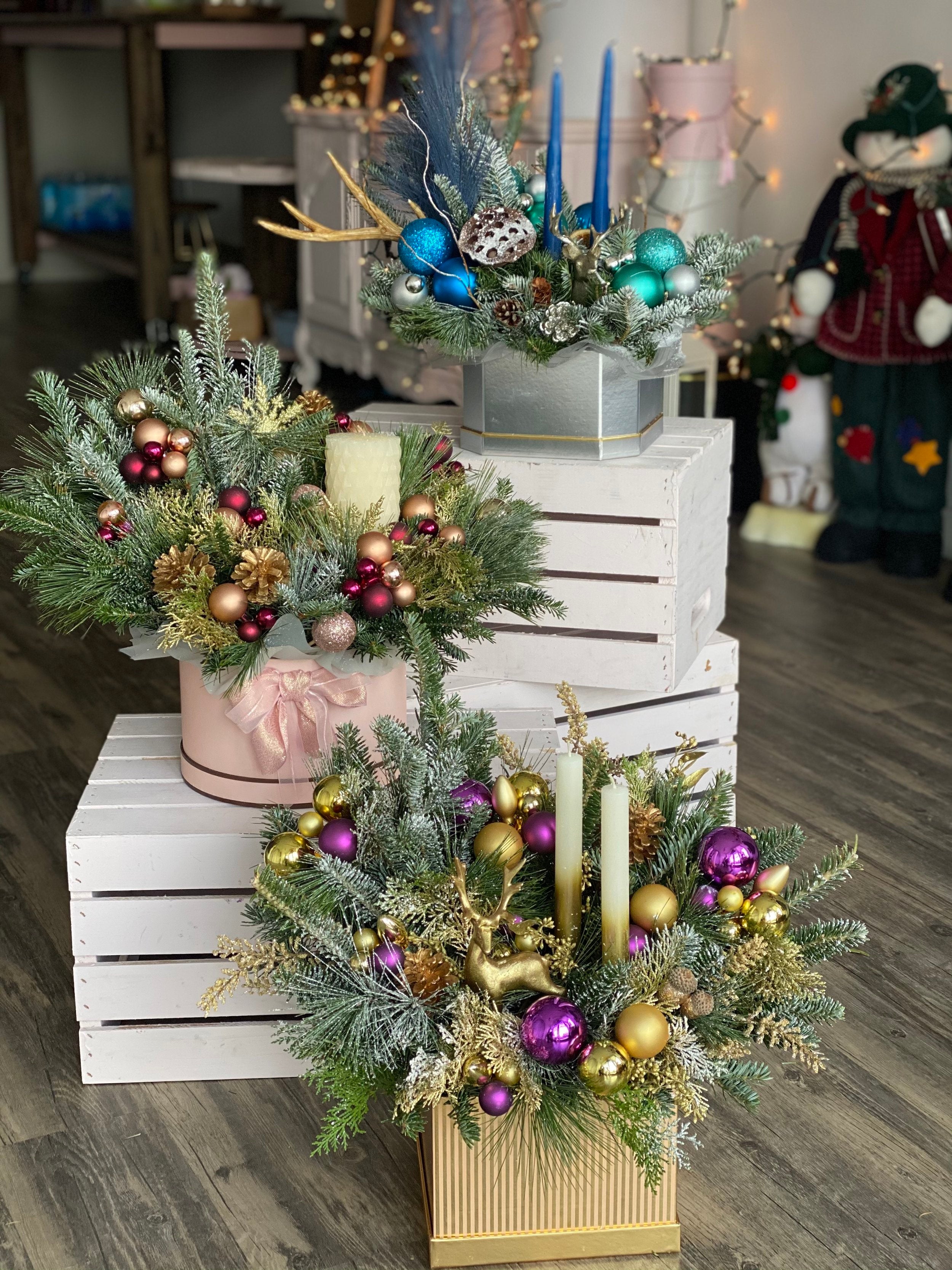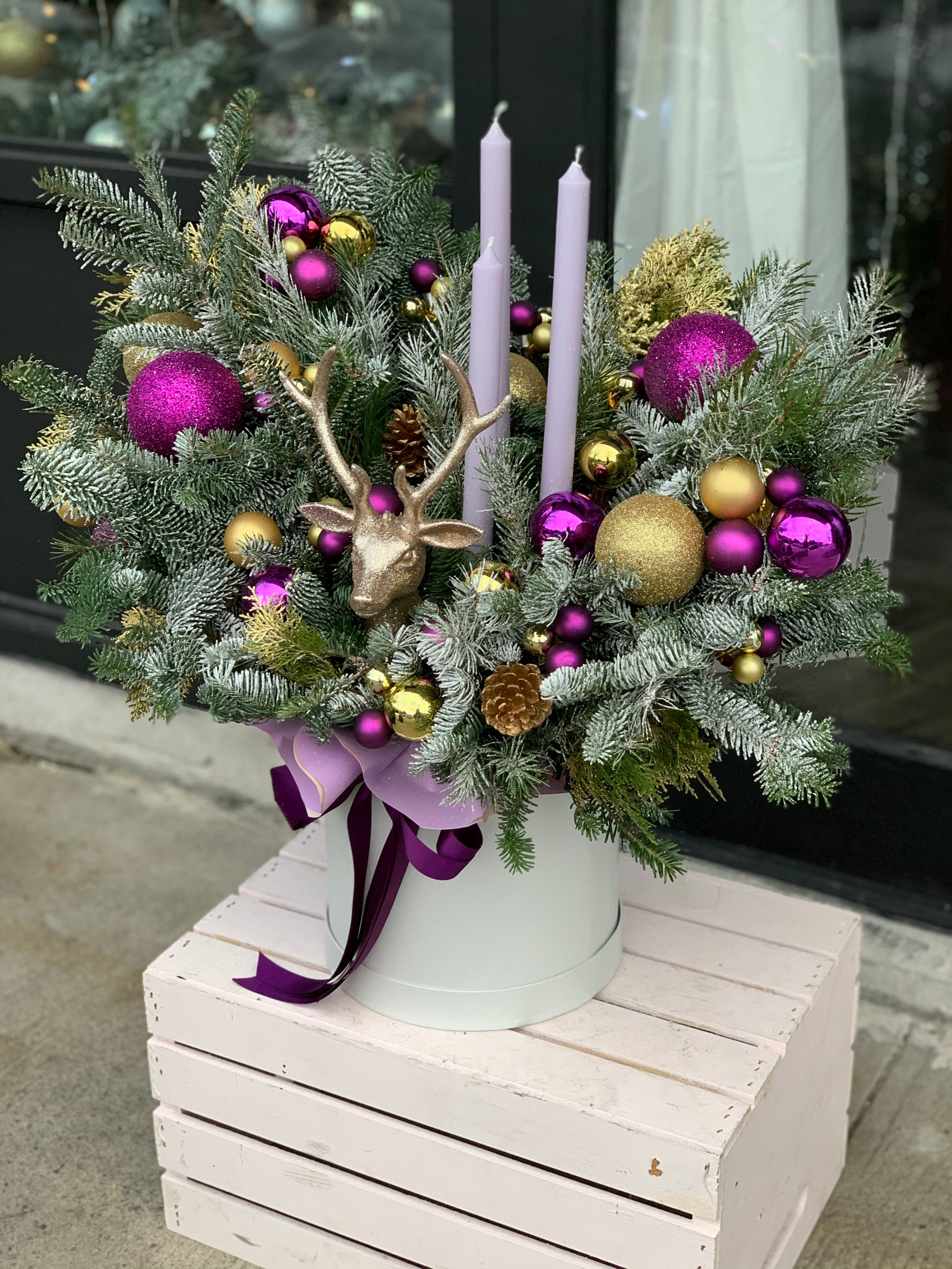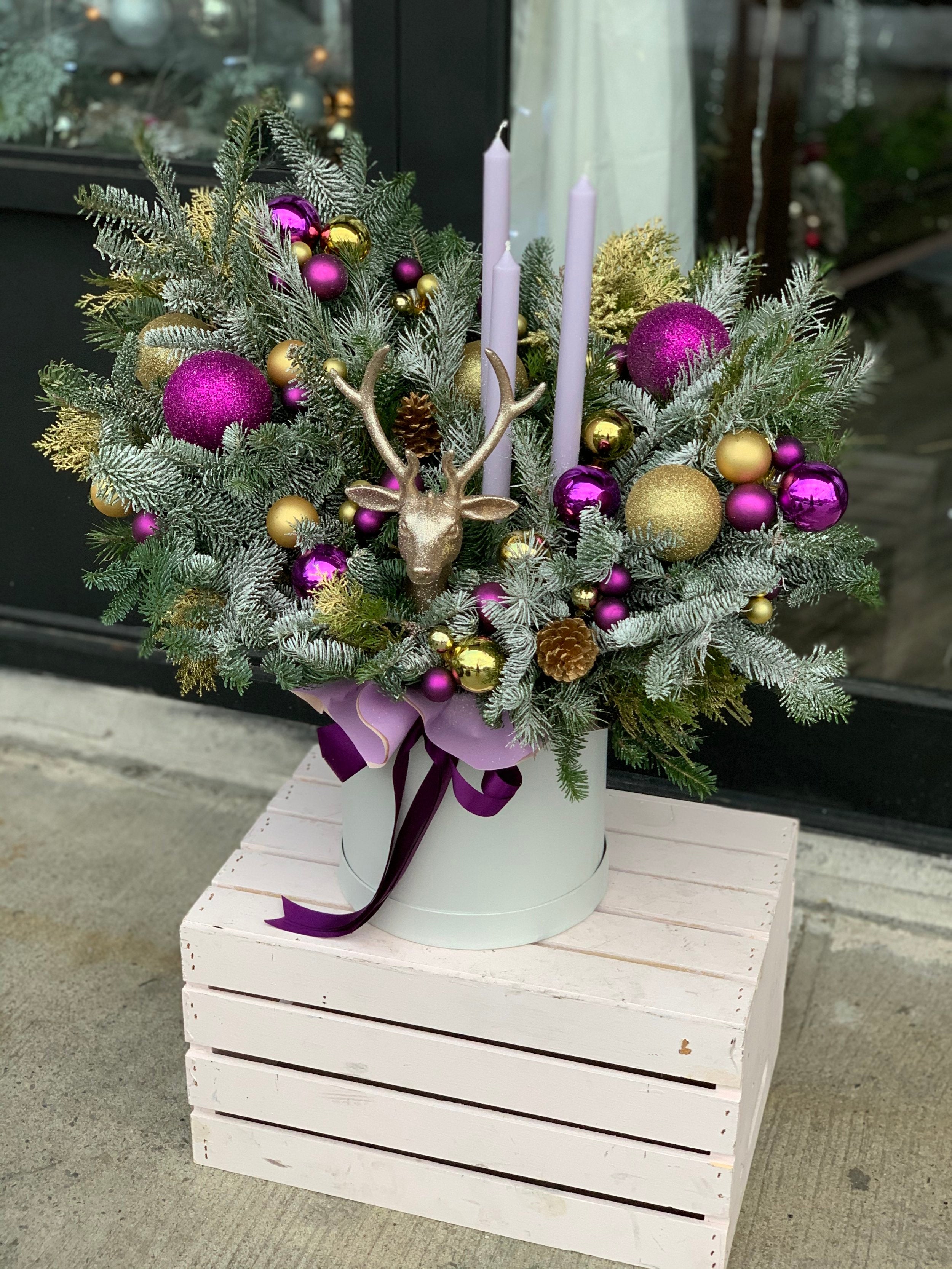 Order Christmas Flowers in NYC. Cristmas Flower boxes, Christmas tree in New York with same-day delivery to Manhattan, Brooklyn, Queens, Staten Island. Christmas decorations by professional florists: Christmas wreath, Christmas pine, Christmas centerpieces, Mini Christmas Tree.