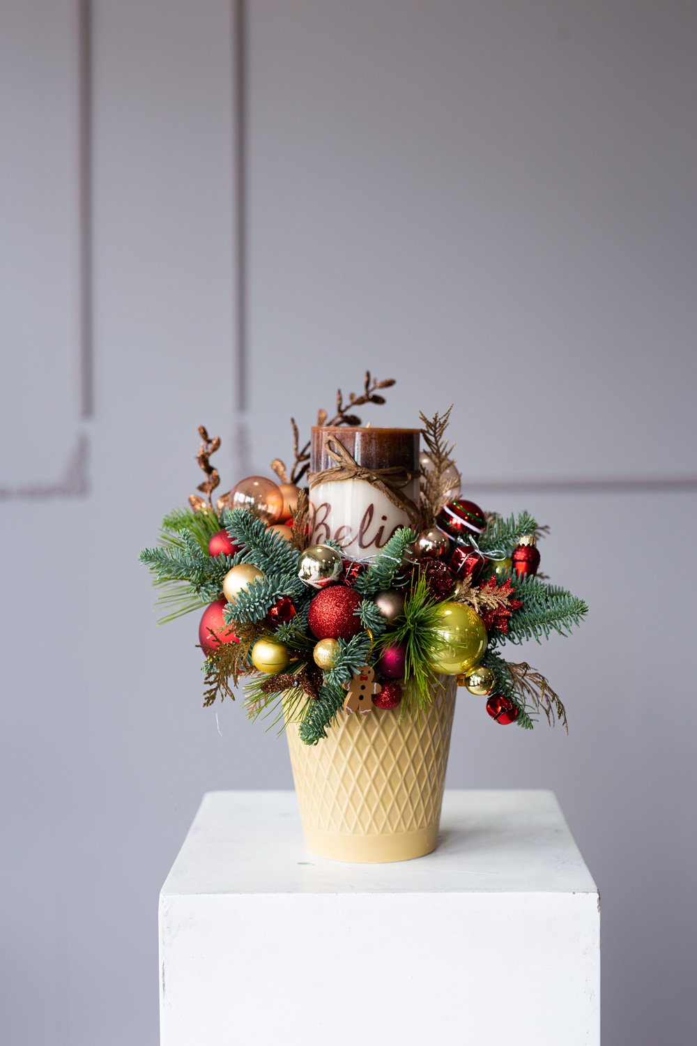 Order Christmas Flowers in NYC. Cristmas Flower boxes, Christmas tree in New York with same-day delivery to Manhattan, Brooklyn, Queens, Staten Island. Christmas decorations by professional florists: Christmas wreath, Christmas pine, Christmas centerpieces, Mini Christmas Tree.