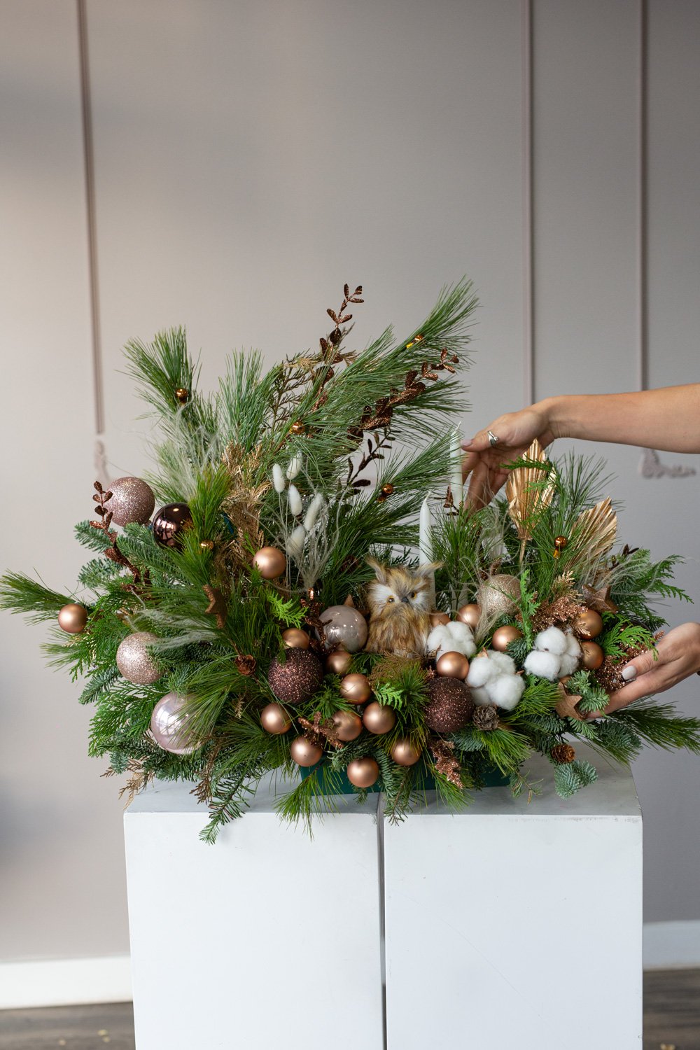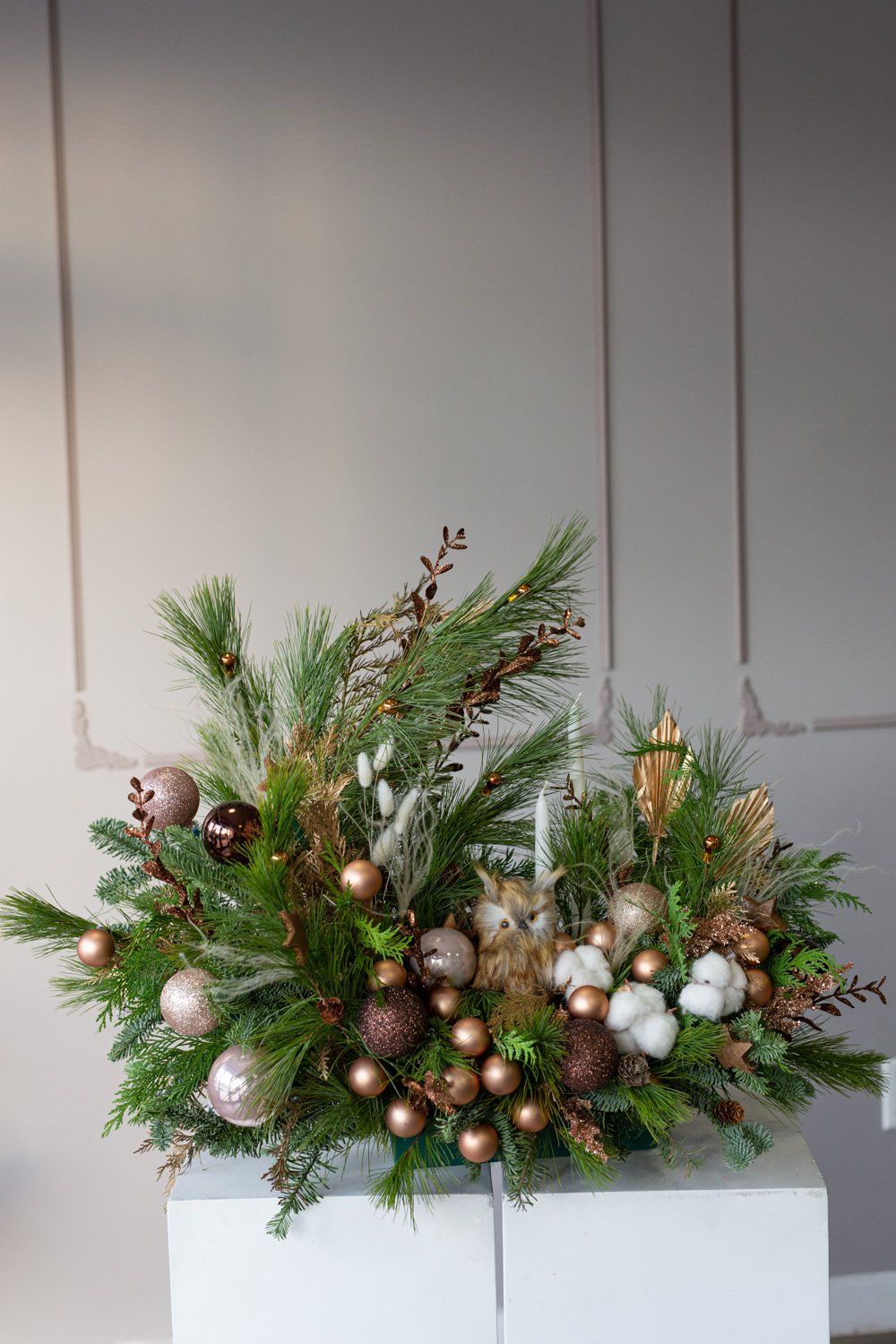 Order Christmas Flowers in NYC. Christmas Flower boxes, Christmas tree in New York with same-day delivery to Manhattan, Brooklyn, Queens, Staten Island. Christmas decorations by professional florists: Christmas wreath, Christmas pine, Christmas centerpieces, Mini Christmas Tree.